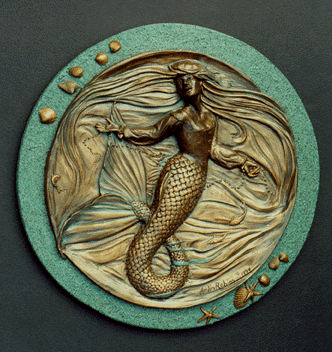 This bas relief is about 12 inches in diameter and one inch thick. She's the first bas relief I've created in many, many years, and I discovered I really like bas relief! The bronze effect is created by bonding bronze dust with the polyurethane resin in the casting process. You have probably heard the terms "bonded bronze" or "cold cast bronze." They all refer to this type of material. |